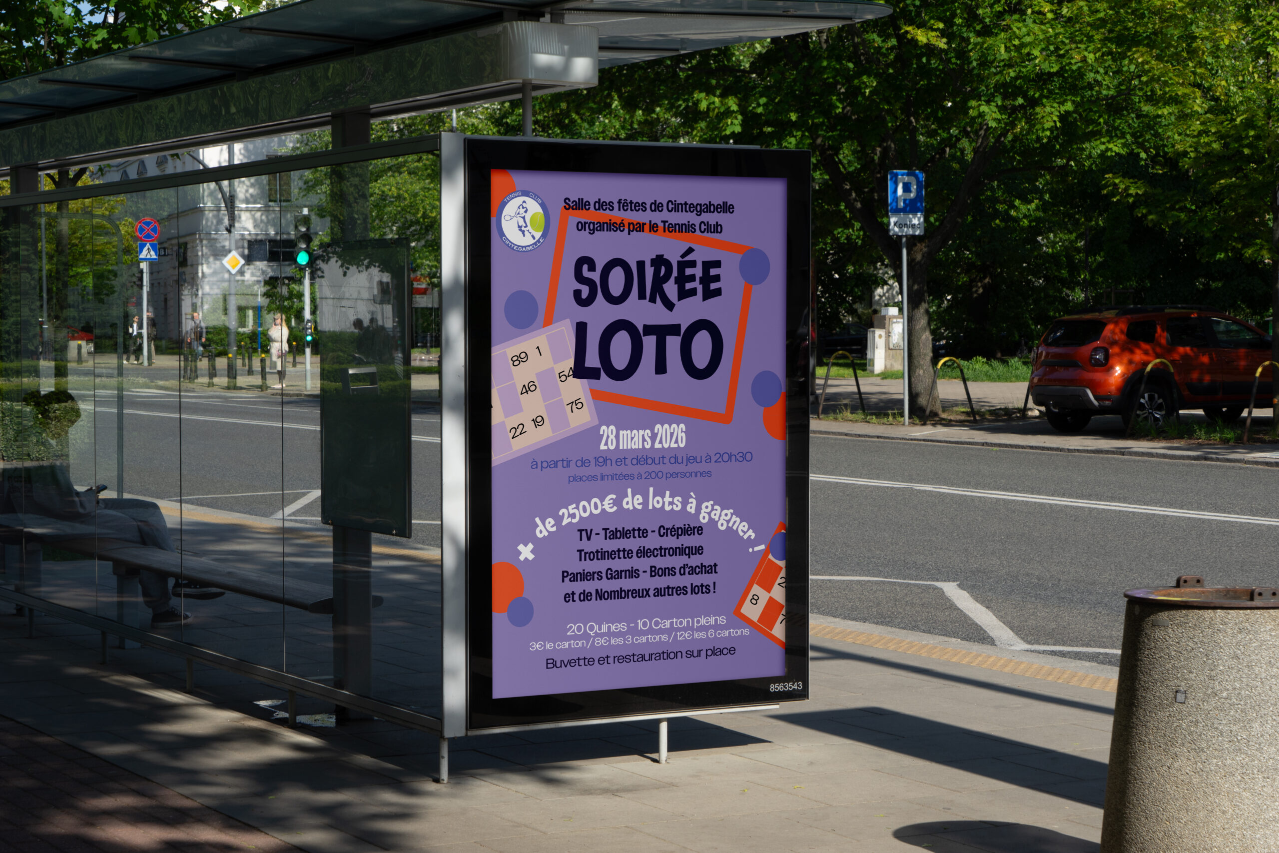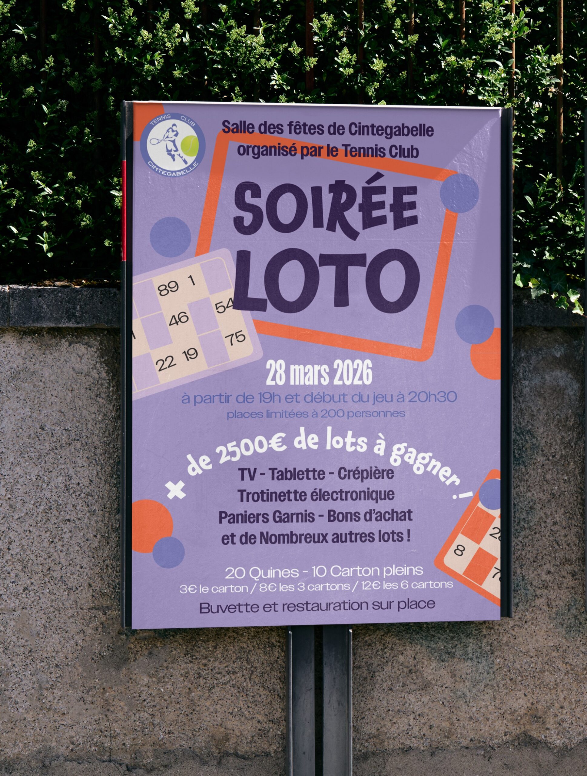 L’objectif était de concevoir une affiche claire et lisible pour un club de tennis afin d’annoncer le loto qu’il organise,